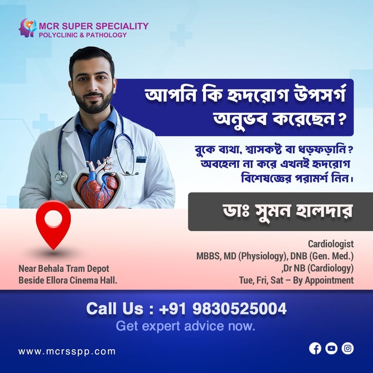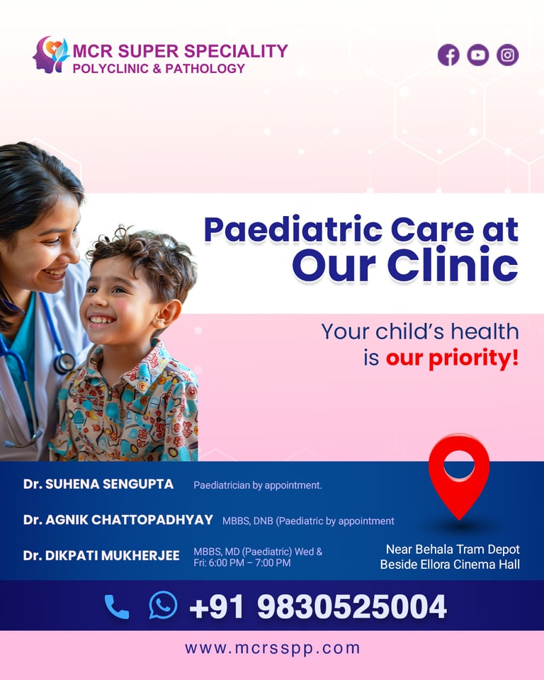 At MCR Super Specialty Poly Clinic & Pathology, we offer expert medical care and advanced diagnostic services. Whether online or in-person, our patient-first approach ensures personalized, affordable healthcare tailored to your needs. Experience compassionate care from experienced doctors dedicated to your health and well-being.